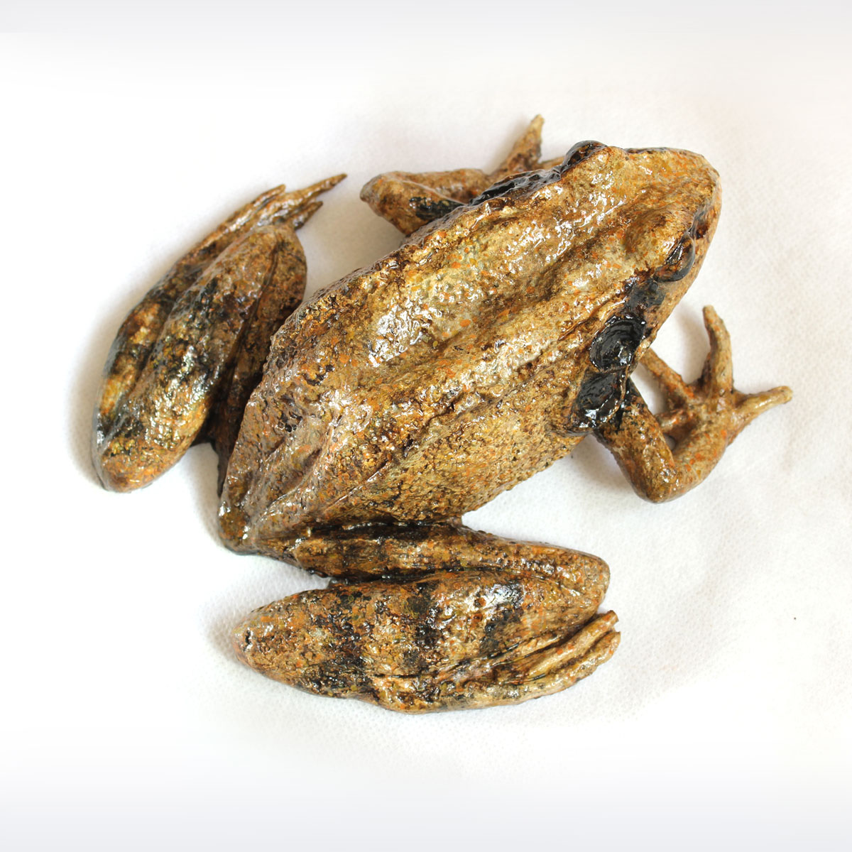 “Frog” is a Hand-Finished Limited Edition Cast Sculpture of the Dalmatian Forest Frog celebrates the quiet wonder of nature. Lovingly casted, hand-finished and painted by an academic artist Vjeran Cengic, capturing the gentle spirit and delicate beauty of this forest frog. Limited in edition, it is a rare, intimate piece that brings warmth, curiosity, and a touch of magic into any space.